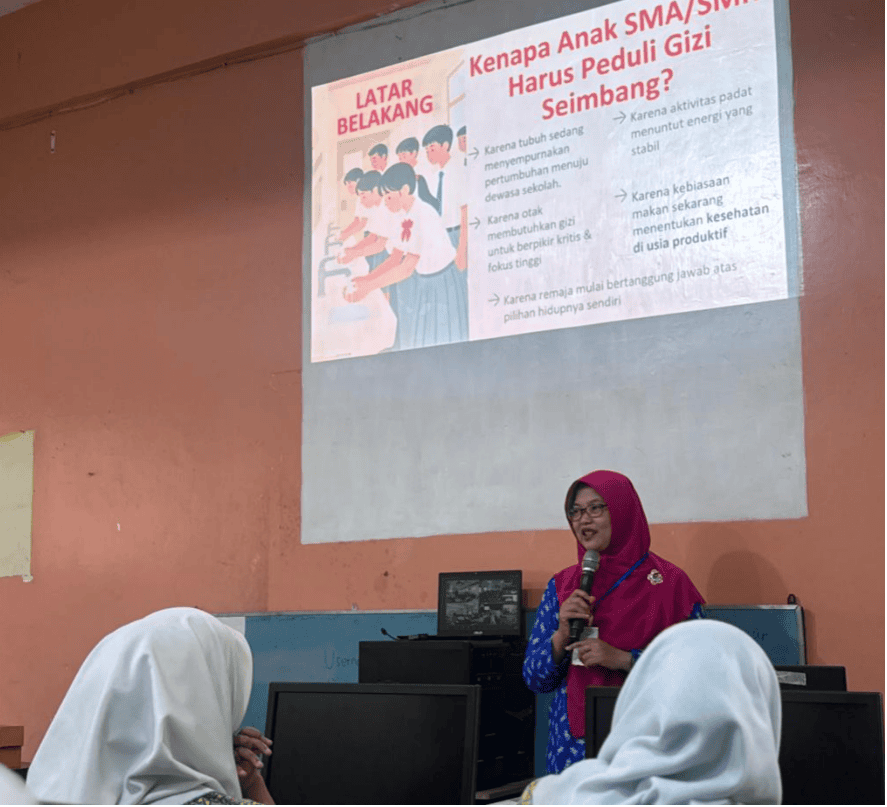 Materi yang disampaikan meliputi konsep dasar gizi seimbang pada remaja dan empat pilar utama dari gizi seimbang. Melalui kegiatan ini, PERSAGI berharap peserta didik mampu memahami mengapa gizi seimbang vital untuk tumbuh kembang optimal, dapat mengidentifikasi makanan sehari-hari yang mendukung gizi seimbang, menerapkan kebiasaan perilaku hidup sehat baik disekolah dan dirumah serta menerapkan pola hidup sehat dan bergizi seimbang sebagai bekal menuju Generasi Emas Indonesia Tahun 2045.